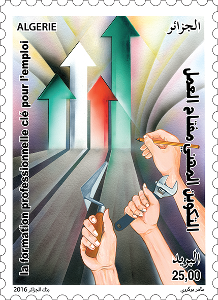 Algérie Poste procédera, le 05 octobre 2016, à l’émission de deux timbres-poste consacrés au thème de la « Formation professionnelle », d’une valeur faciale de 10,00 DA et de 25,00 DA.